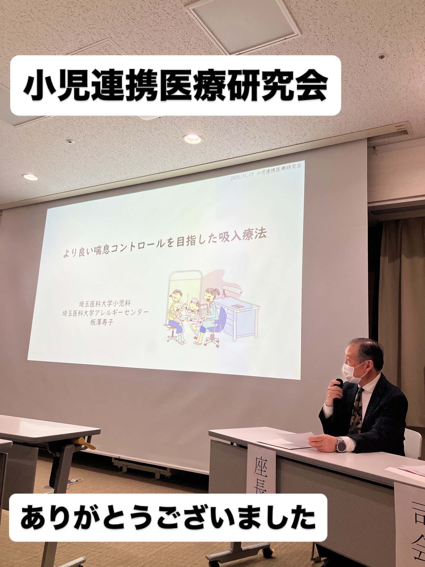 小児専門病院として、小児救急(二次救急まで)対応している土屋病院の現状および、埼玉医科大学小児科 教授 板澤先生によるこどもの喘息による成長への影響や早期治療コントロールの重要性について講演がありました。