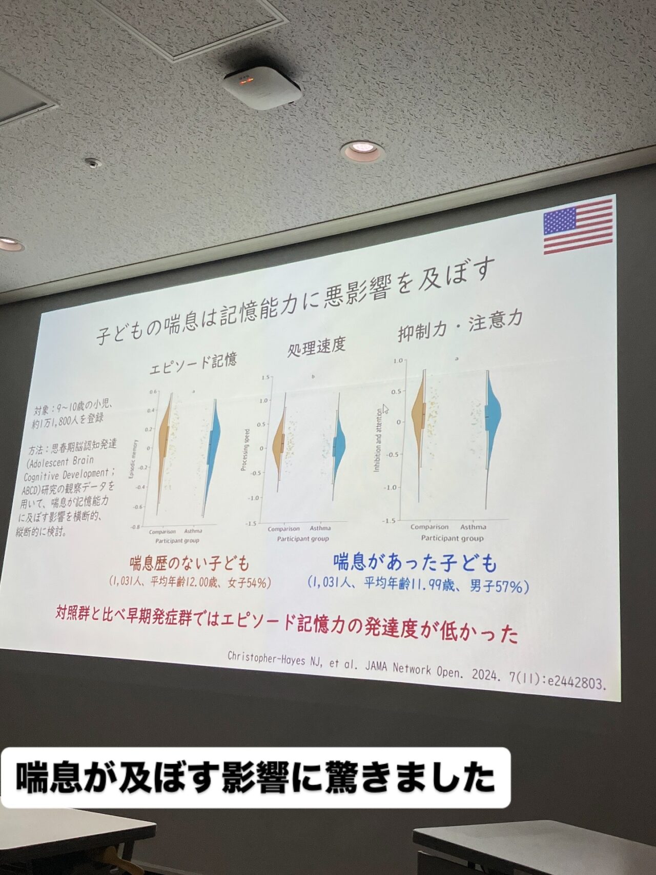 小児喘息においては、早期の介入による適切な治療コントロールが必要であり、成長において影響があるとの話は、こどもを持つ身として、自分事として考える内容となりました。