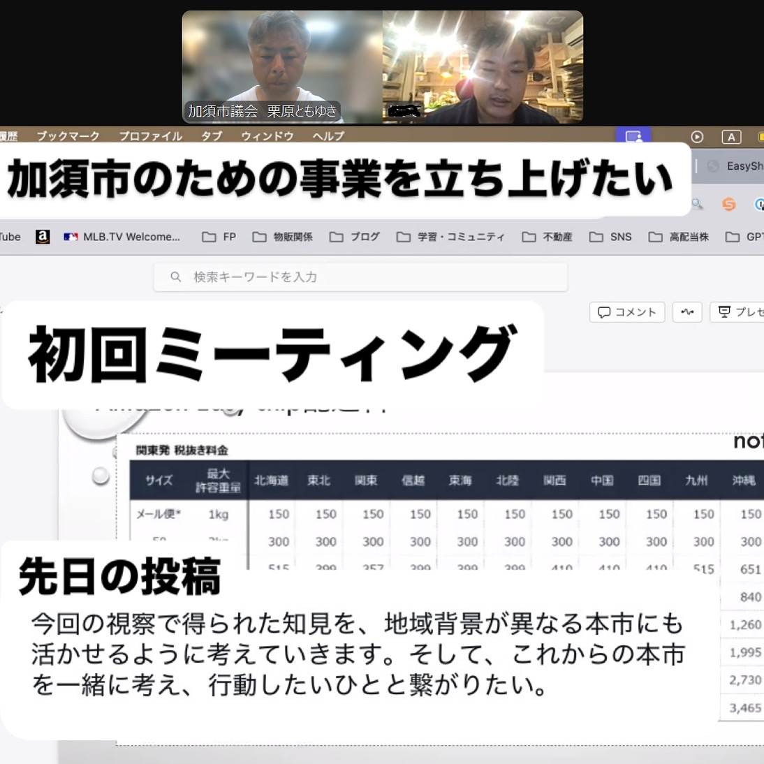 その後、反応があり、初回ミーテングを行いました。